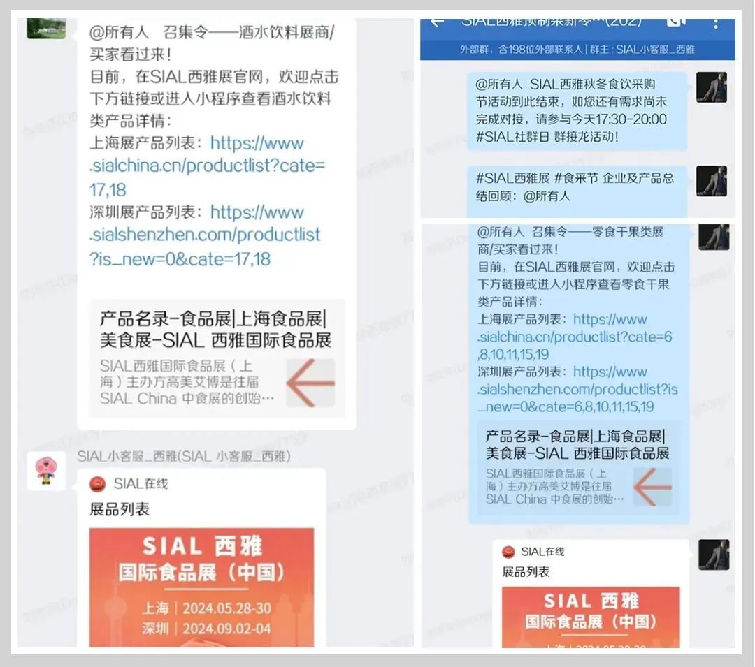 SIAL西雅展私域社群推介是線上年貨采購節的重點環節。私域社群是SIAL西雅展為食飲展商和買家打造的,專門用于食飲B2B商貿交流的平臺,其中絕大部分為SIAL西雅展多年服務的優質展商以及優選買家。